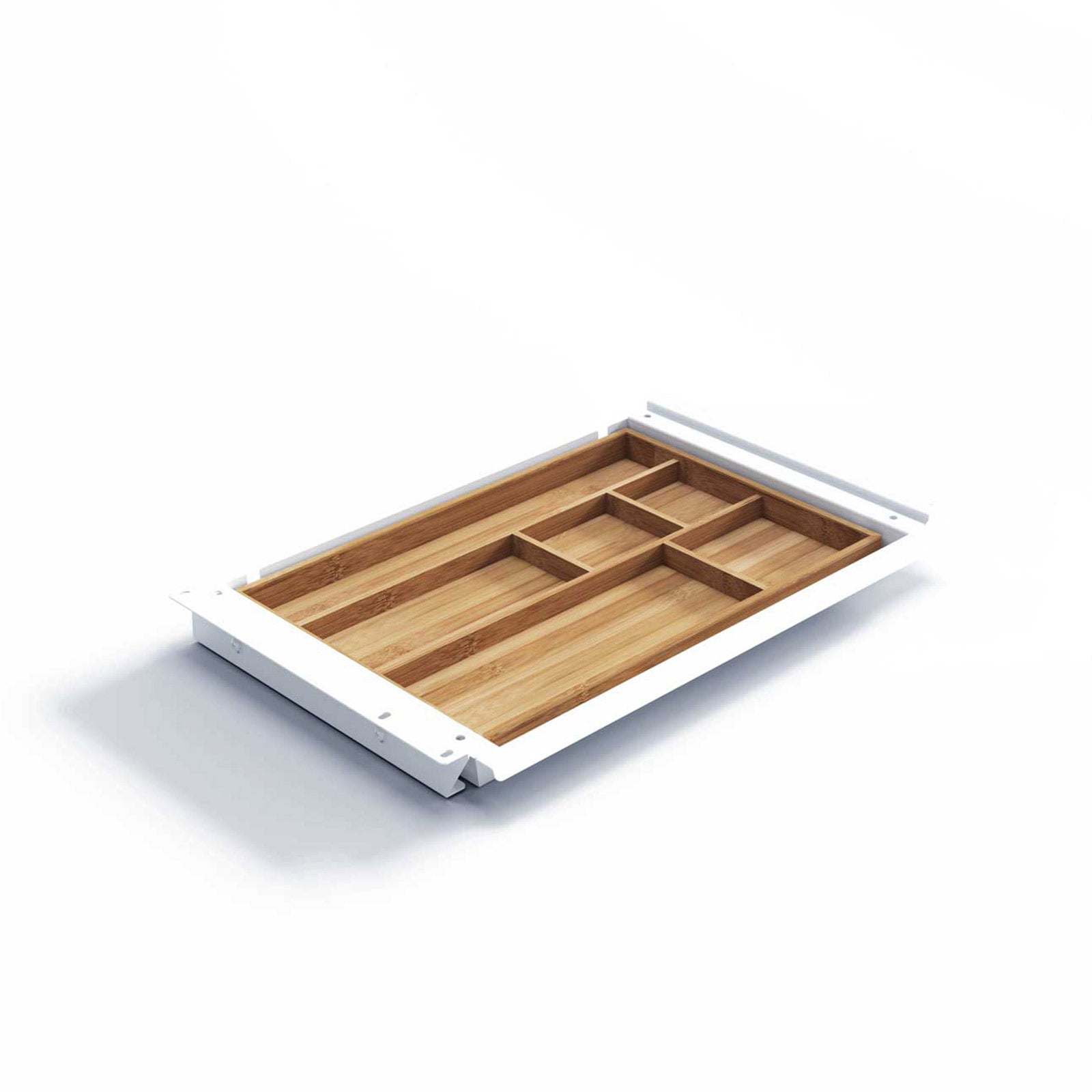 Die Eisnhauer® Grip M Schublade schafft diskreten Stauraum direkt unter Ihrer Schreibtischplatte, ideal für die Unterbringung von Büroutensilien wie Stiften, Scheren und Notizblöcken. Sie sorgt dafür, dass Ihre Schreibtischfläche frei bleibt, während alles Nötige in Reichweite ist. Der mitgelieferte Bambus-Einsatz unterteilt den Innenraum und sorgt für zusätzliche Ordnung und Übersichtlichkeit.